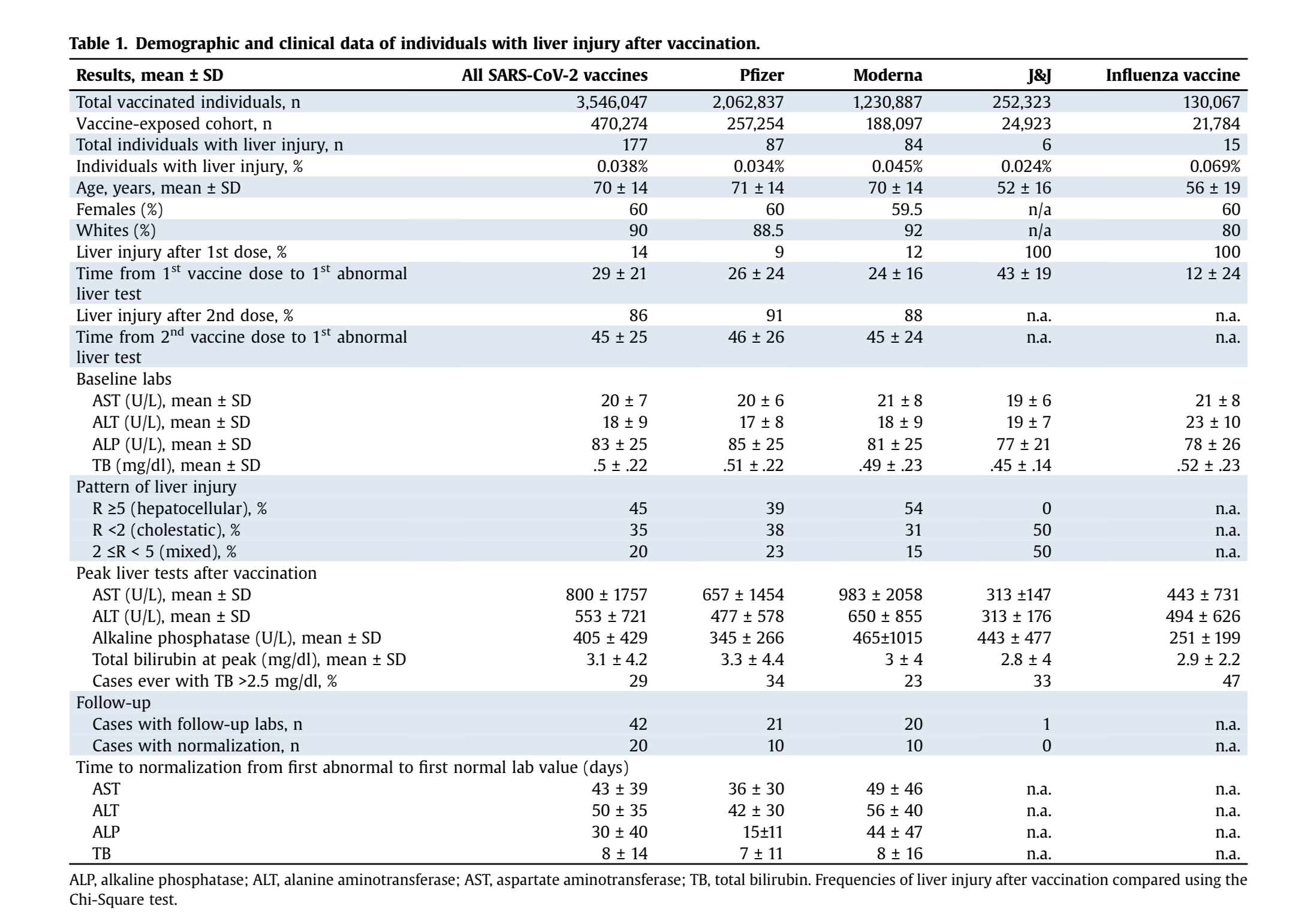 The findings of concern were that these injuries with the covid vaccine occurred in people with no previous liver issues, whereas the flu vaccine that was not isolated out and those with liver issues previously were included in the injury totals. Second of concern was the latency of identifying the liver issues. It was 20-46 days AFTER the vaccine when problems began. They hypothesized that the mRNA technology was causing inflammatory reactions that were delayed and unique in onset and duration.